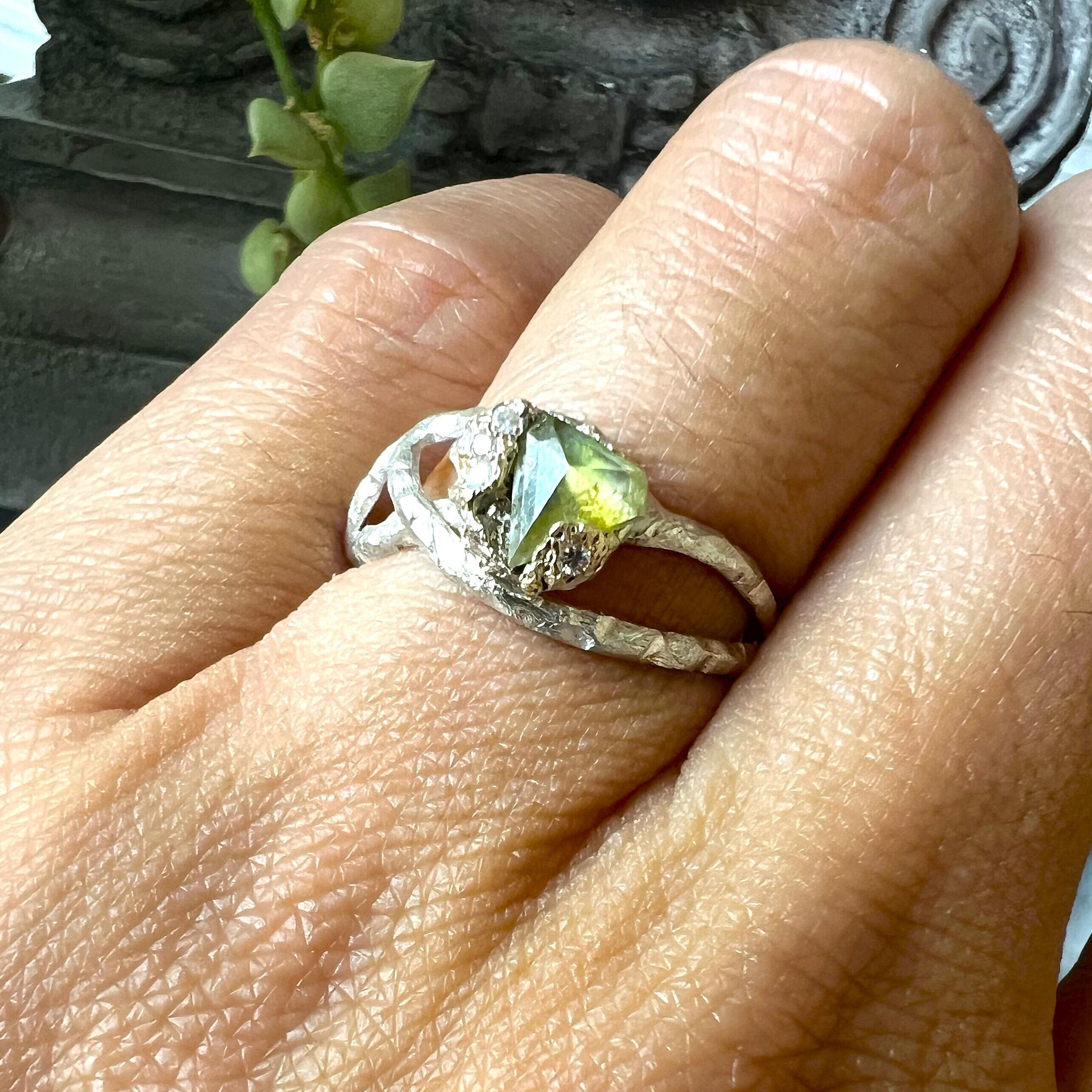 イエローにややグリーンをかんだようなナチュラルダイヤモンドを