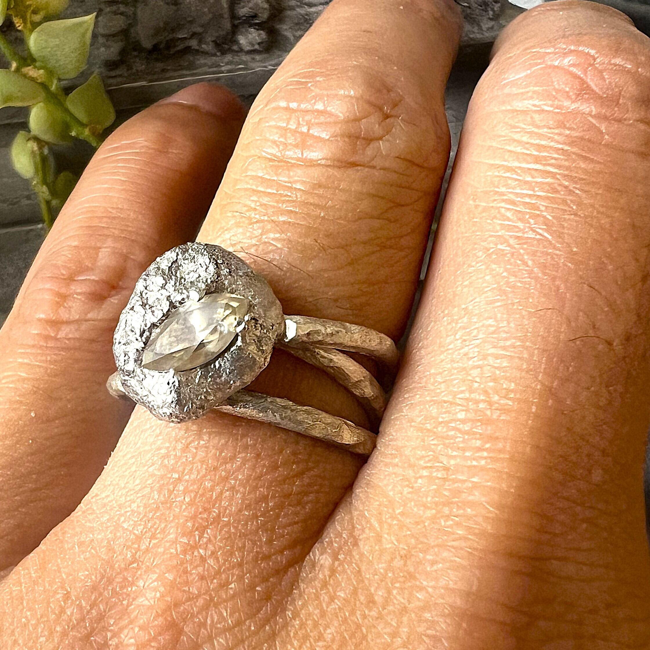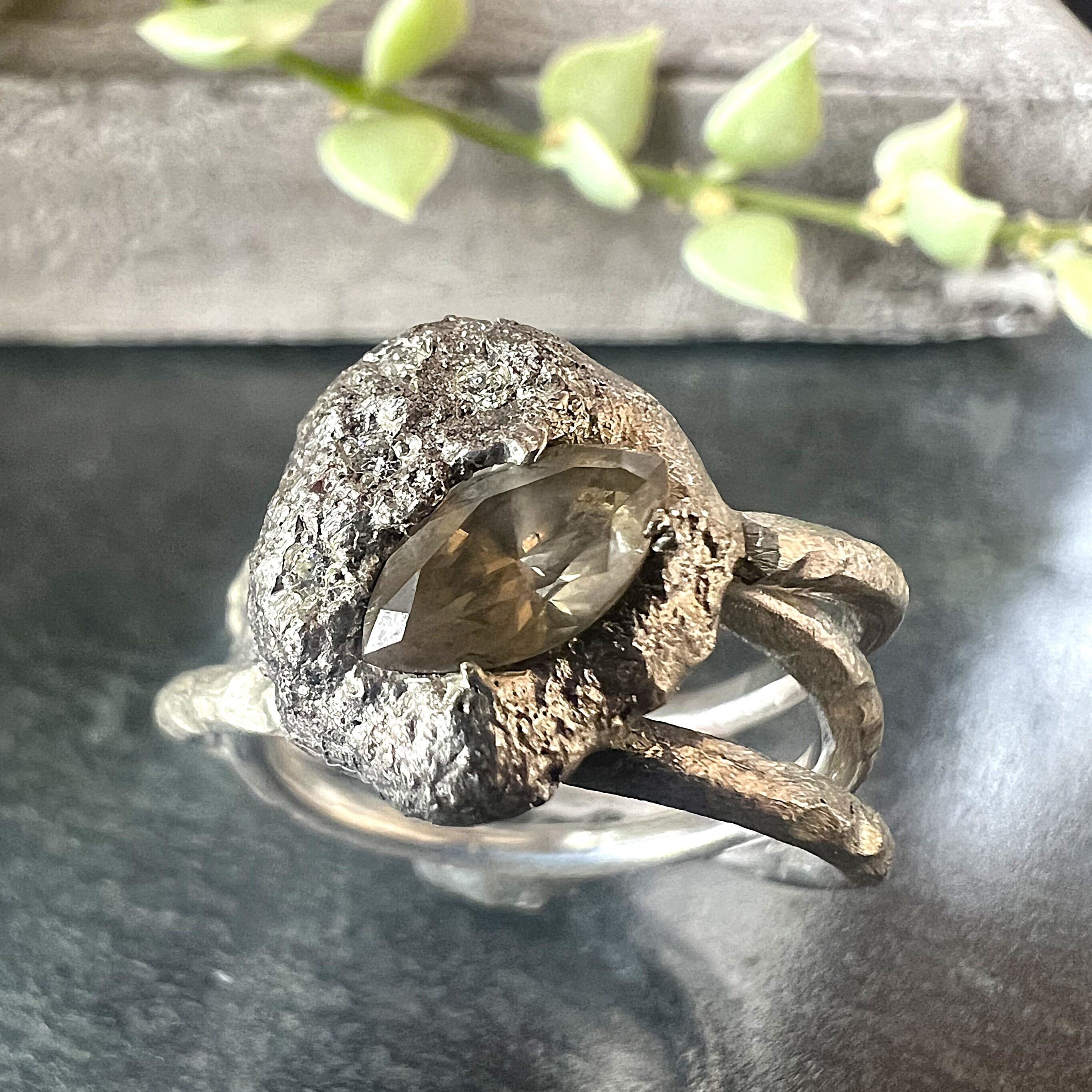 ブラウンダイヤの周りを5石のメレダイヤで取り巻いています。