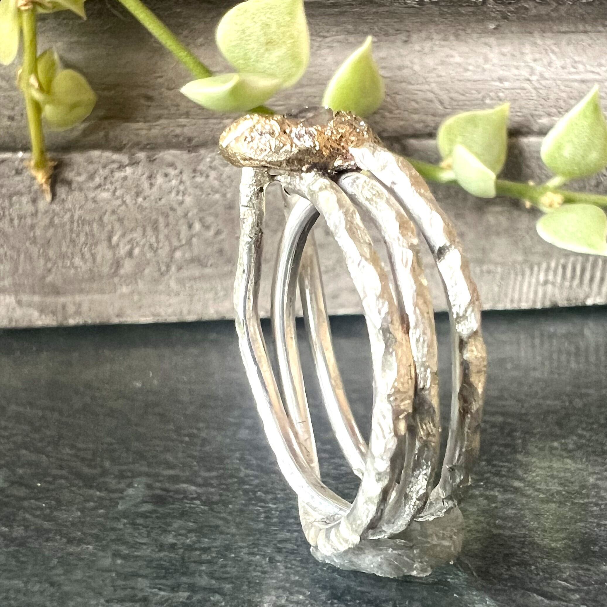溶けた金属に直接宝石をセットする特殊な制作方法をとっており、