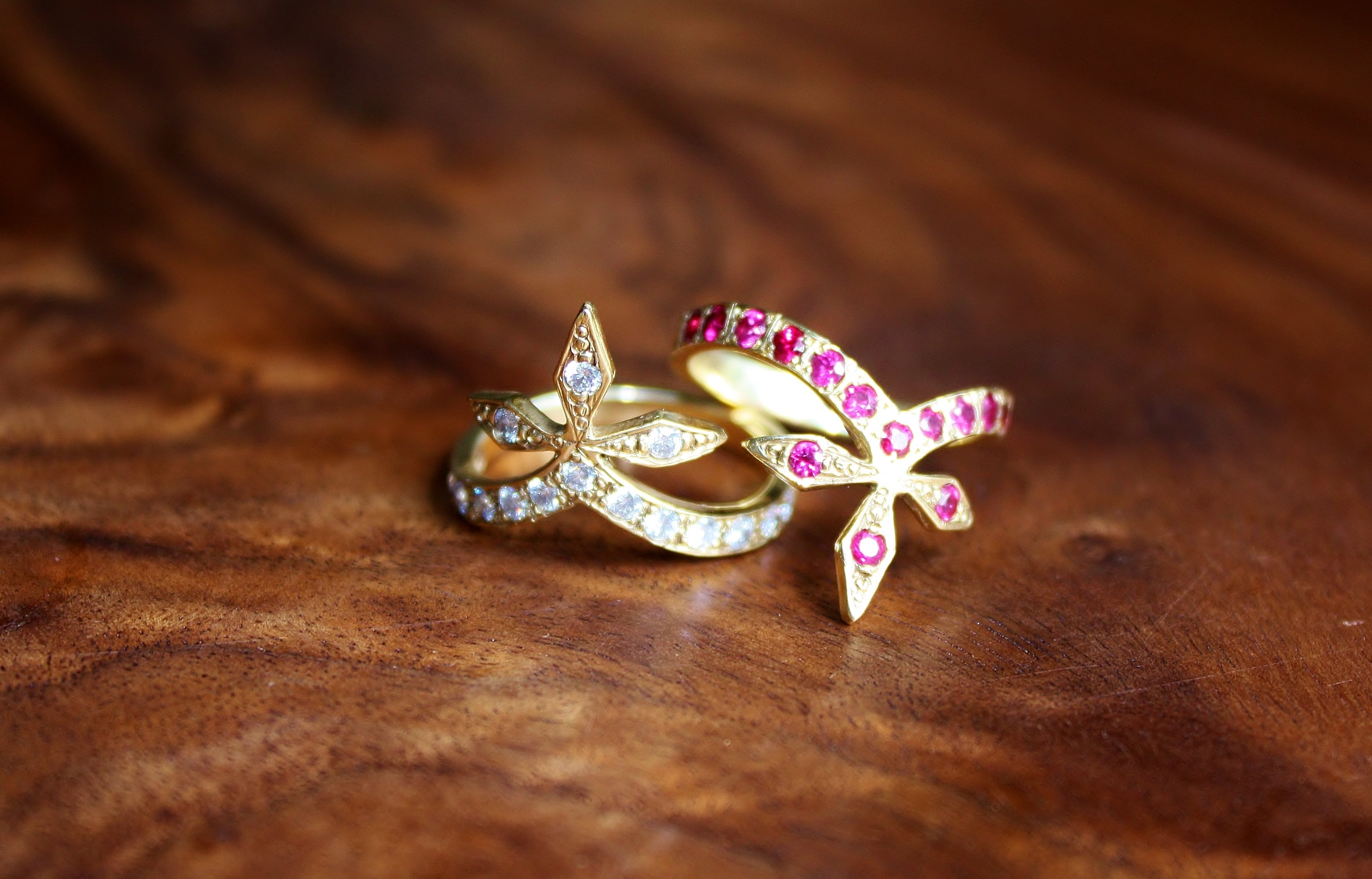 またこのリングはセットリングとして、スタンダードなエンゲージリングなどと、重ねづけされても良いようにデザインされています。