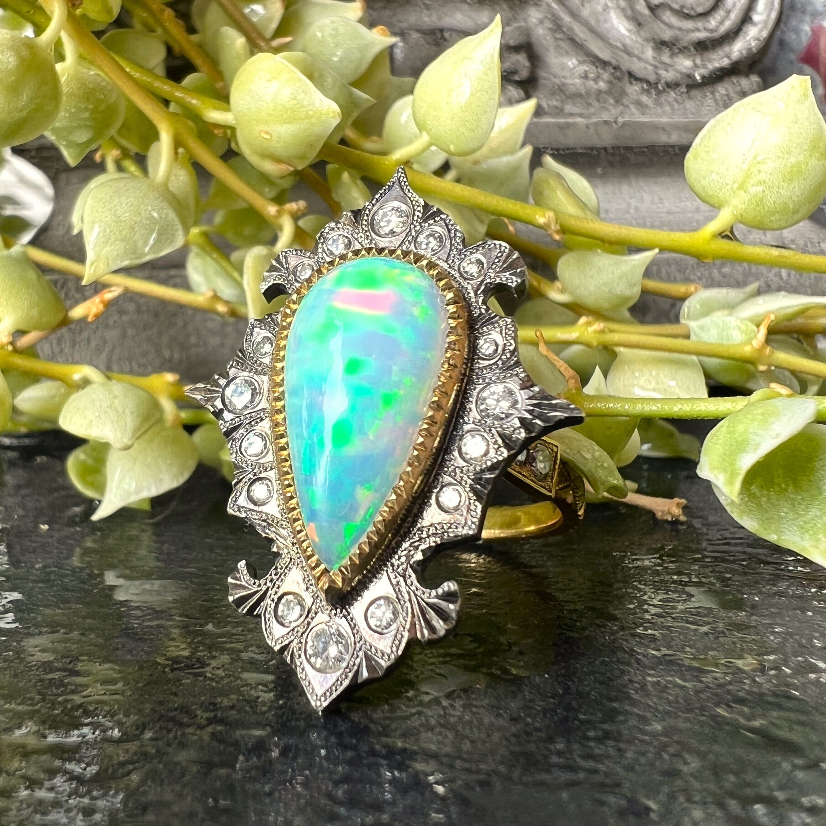 大粒でダイナミックに全体的に浮かぶ遊色が美しいエチオピアンオパール