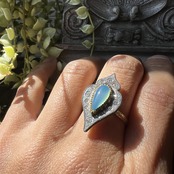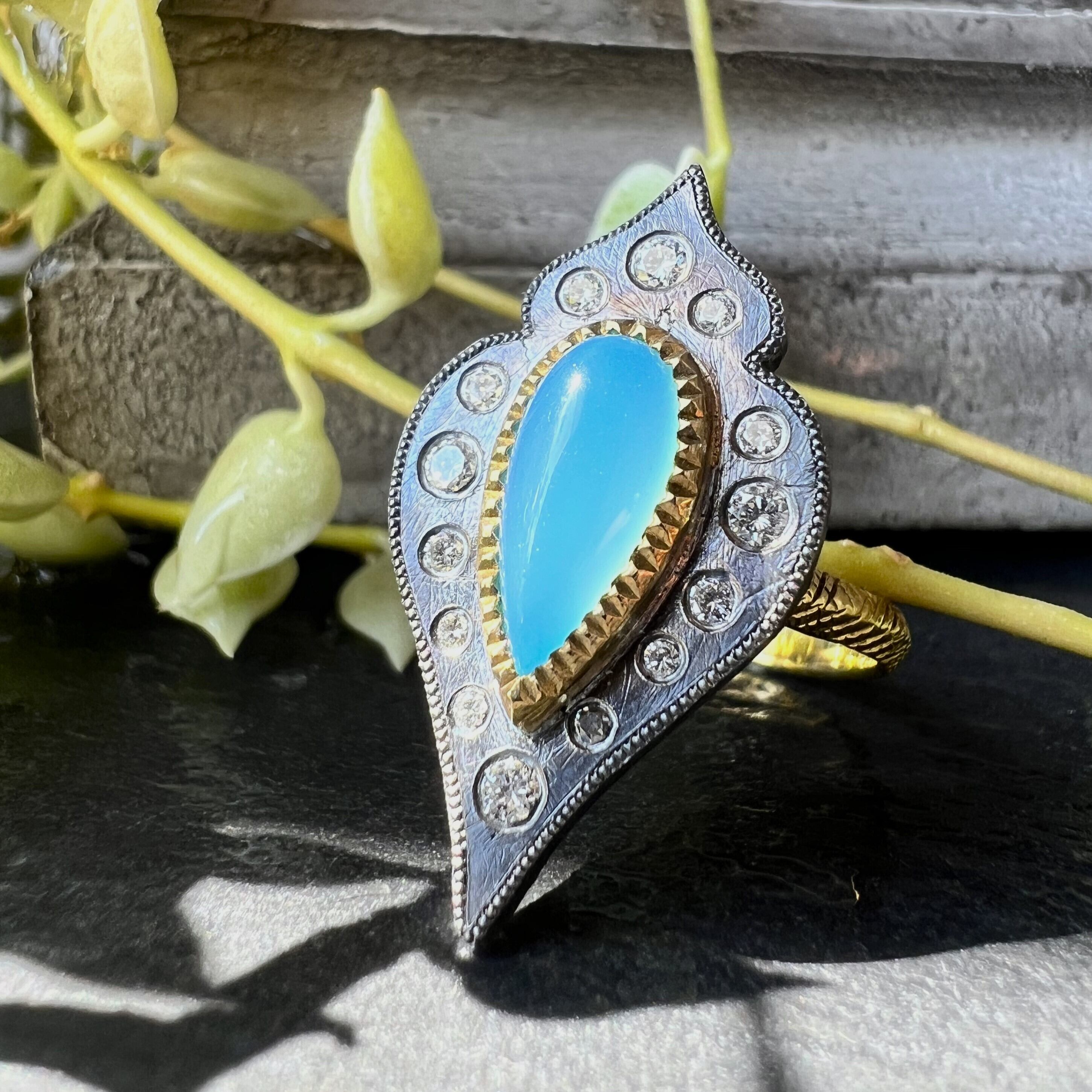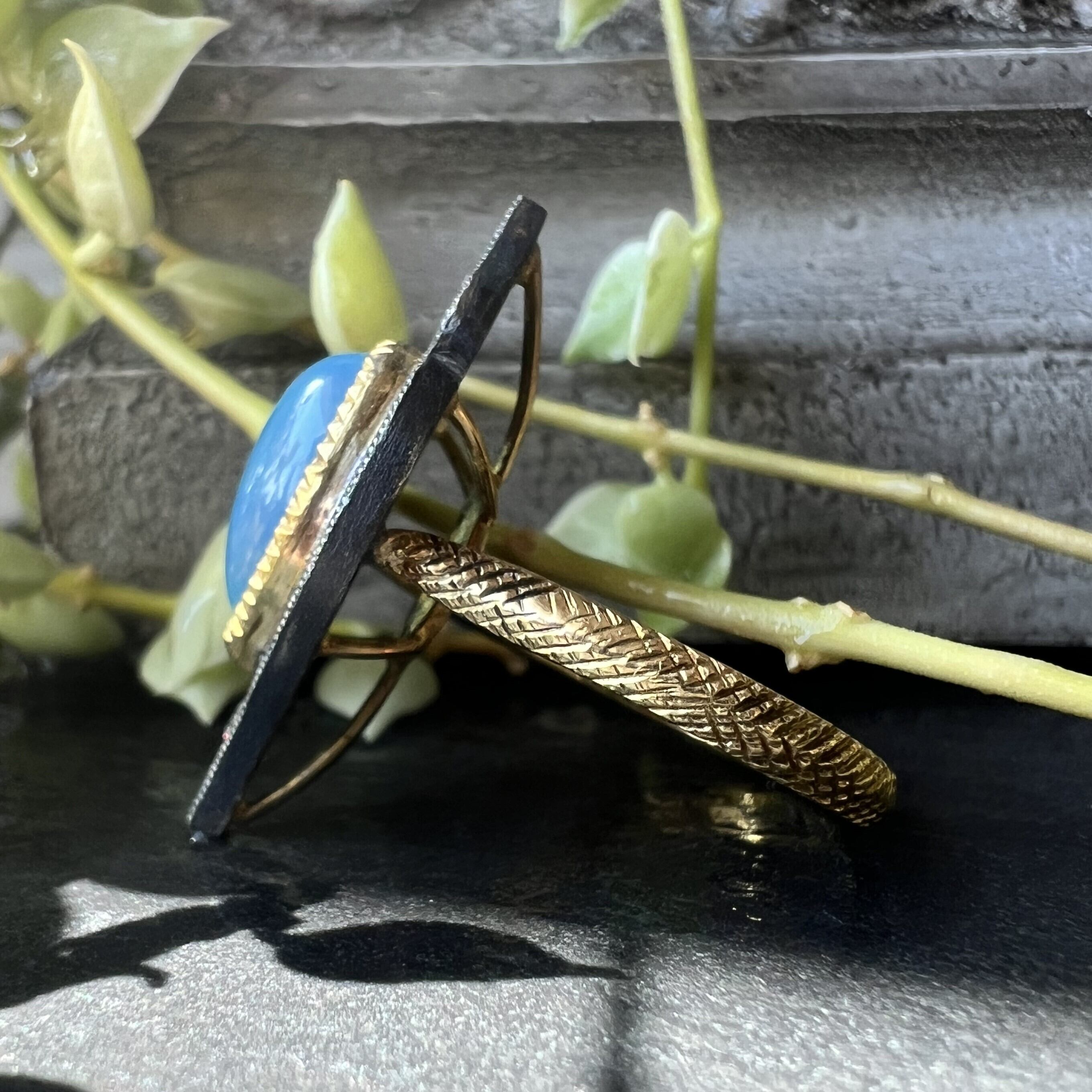 メインストーンには鮮やかな色のシーブルーカルセドニーを使用